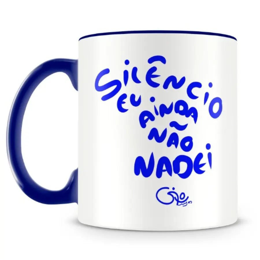 Ideal para quem gosta de poesia visual, a Caneca Silêncio eu ainda não nadei tem estampa artística que provoca pausa e contemplação. Um objeto afetivo para o dia a dia — e presente ideal para quem ama design autoral.