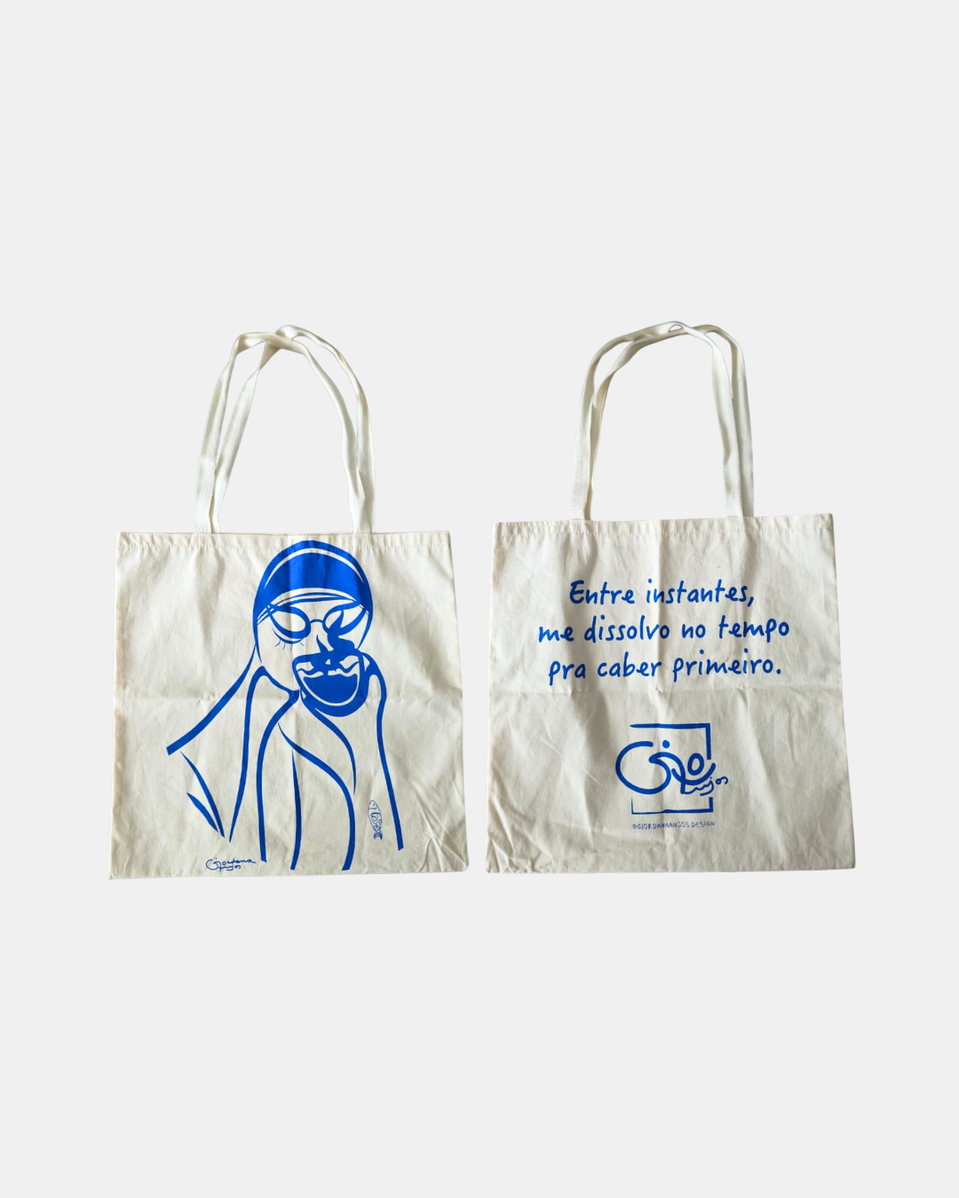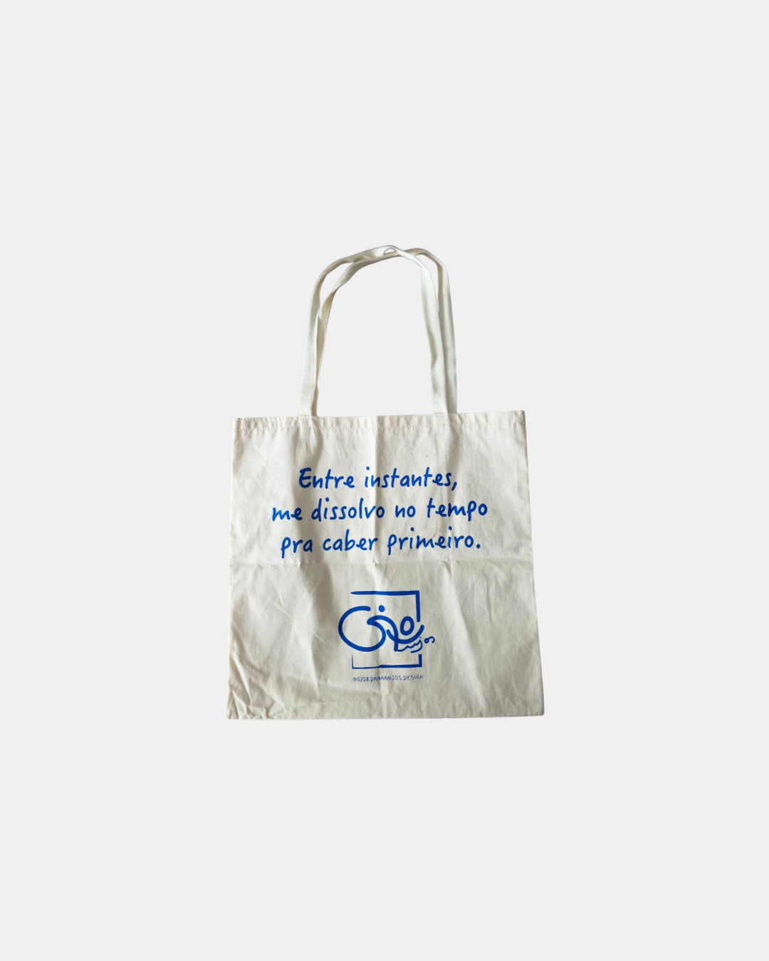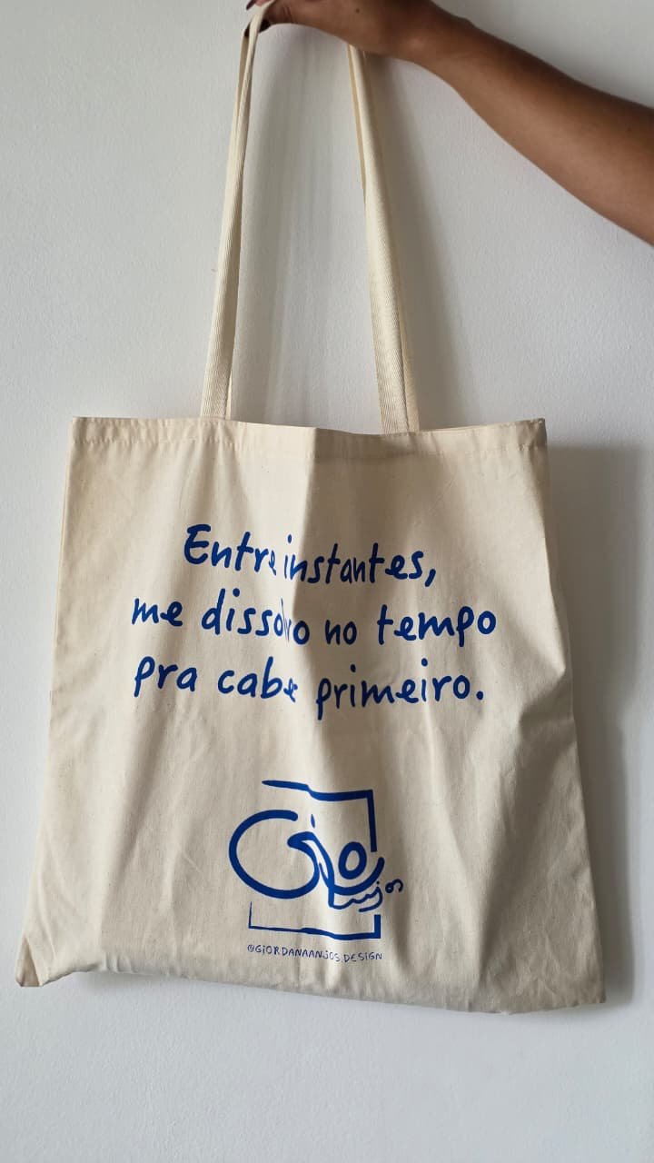 Ecobag Pausa — um convite para respirar entre os instantes. Feita em algodão cru, com 28 x 40 cm e alças no mesmo tecido, ela traz a leveza da poesia estampada em azul e a delicadeza do traço artístico que a acompanha. Ideal para o dia a dia, para carregar livros, compras ou afetos, é uma peça que combina utilidade com arte e significado. Uma pausa portátil para acompanhar seus caminhos.